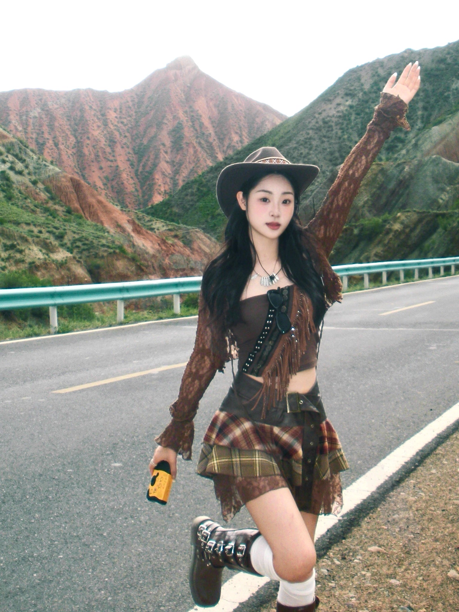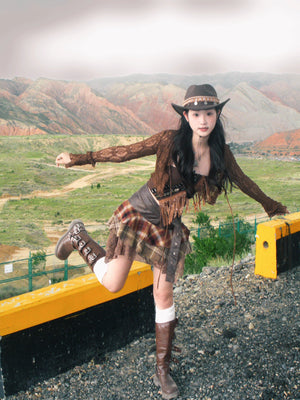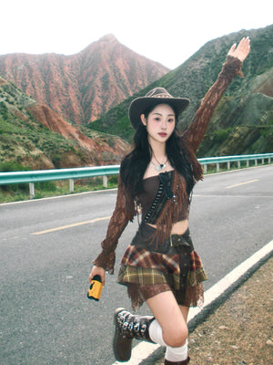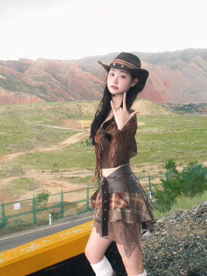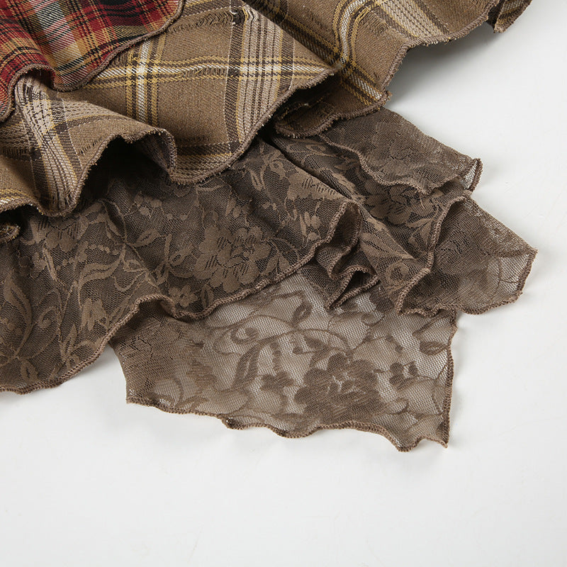 Zwoyren Patchwork Ruffled Plaid Skirt