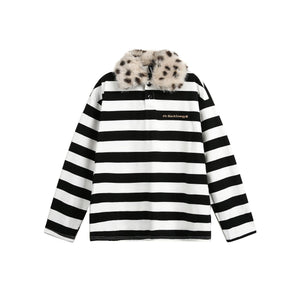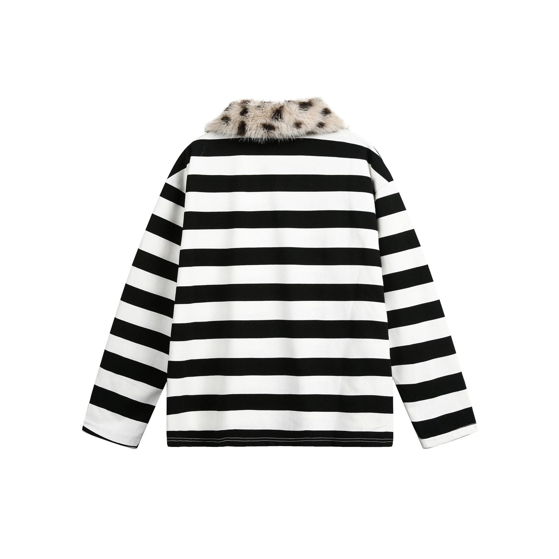 • Detail Features: Striped Pattern, Faux Fur Collar, Ribbed Cuffs and Hem