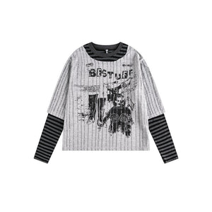 Zwoyren Striped Contrast Long Sleeve Tee