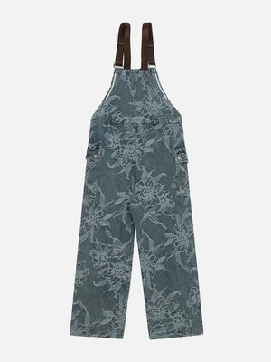 Zwoyren Embroidery Flower Denim Overalls