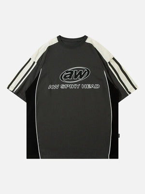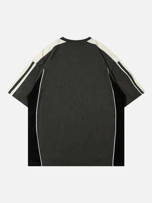 Dark Contrasting Color Deconstructed Strip Racing T-Shirt