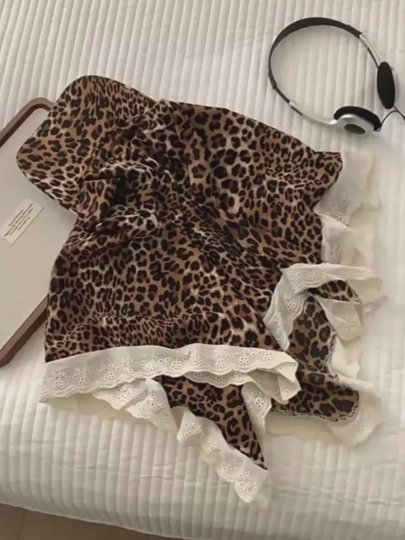 Zwoyren Leopard Graphic Lace Bandana Cap