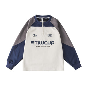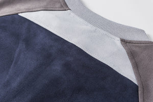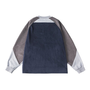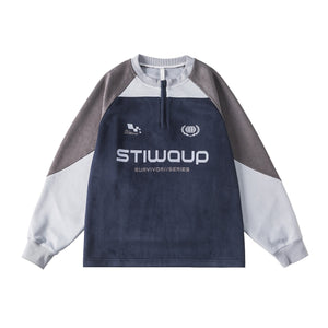 Neckline Half-Zip Stitching Suede Shoulder-Sleeved Sweater
