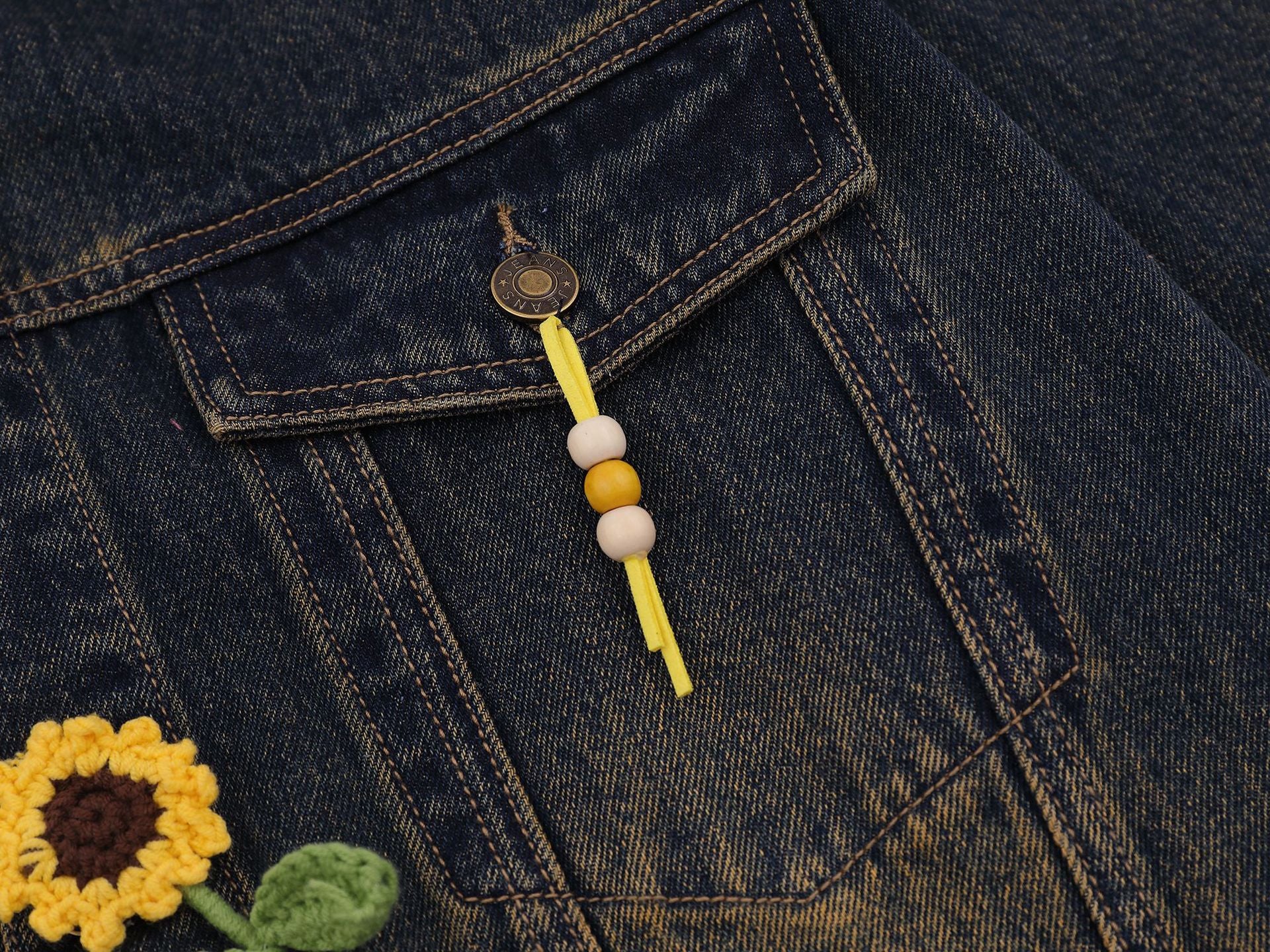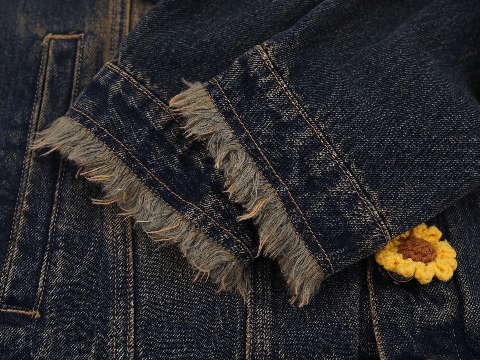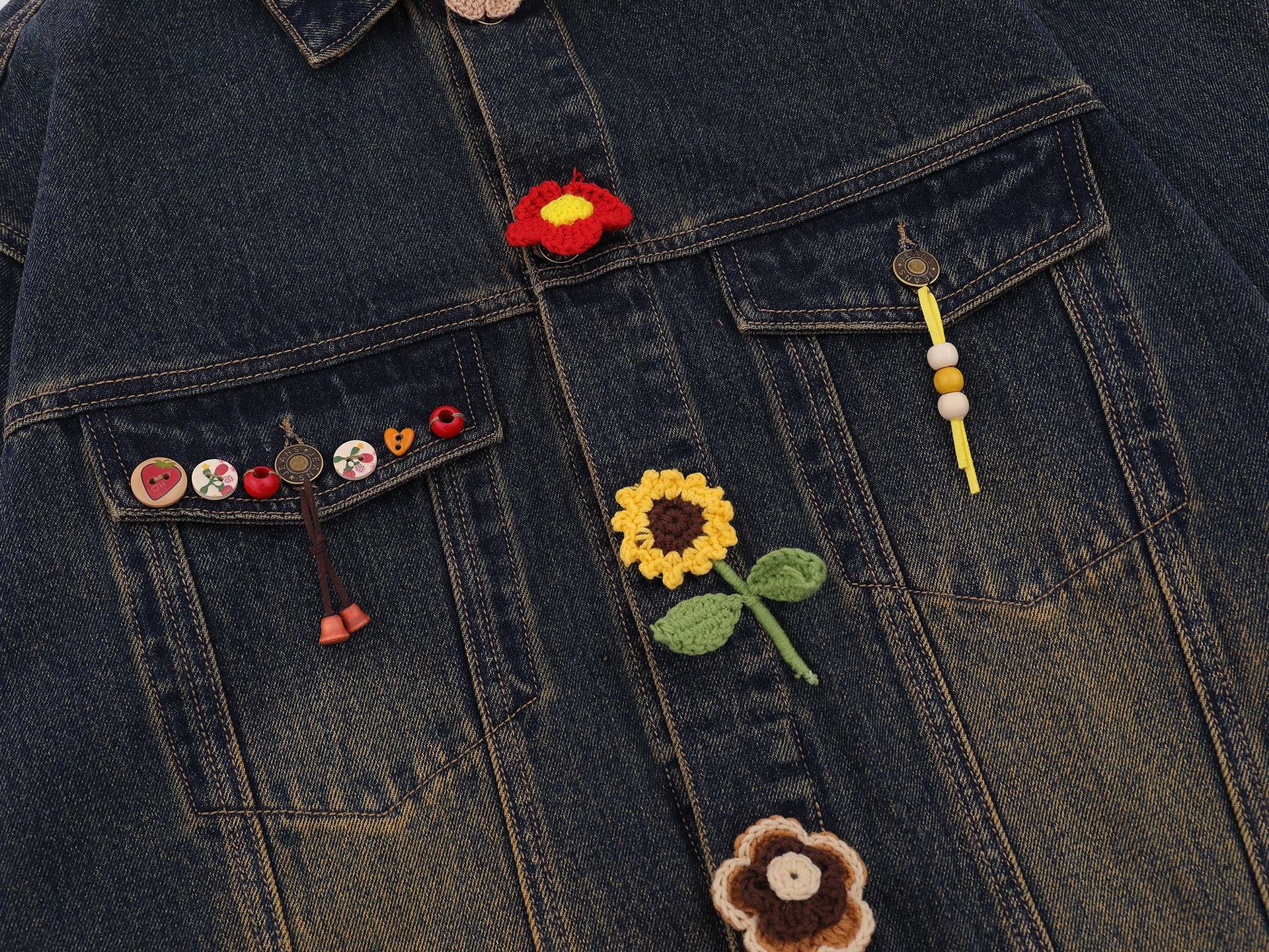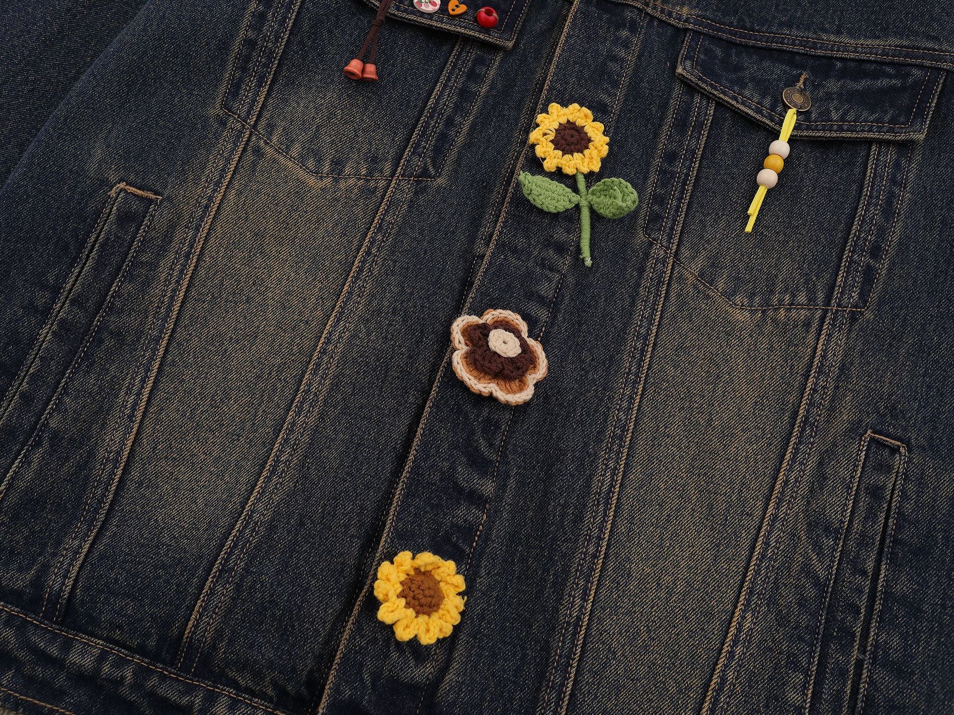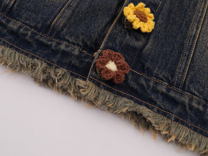 Zwoyren Crochet Floral Washed Denim Jacket