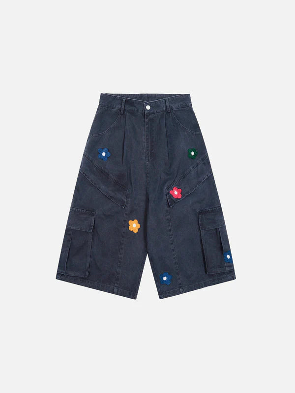 Zwoyren Crochet Flower Baggy Longline Shorts