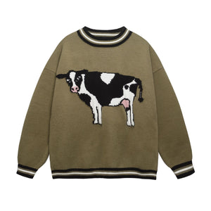 Zwoyren Cute Cow Crew Neck Sweater