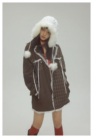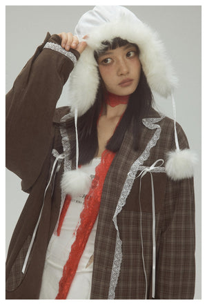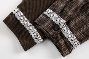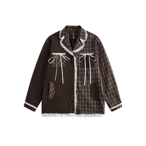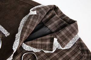 Zwoyren Plaid Lace Patchwork Jacket