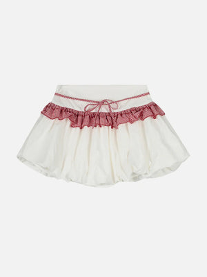 Add a playful twist to your wardrobe with this vintage-inspired plaid patchwork skirt. Soft ruffles, bubble volume, and gingham charm make it the ultimate statement piece for your sweet and stylish days.