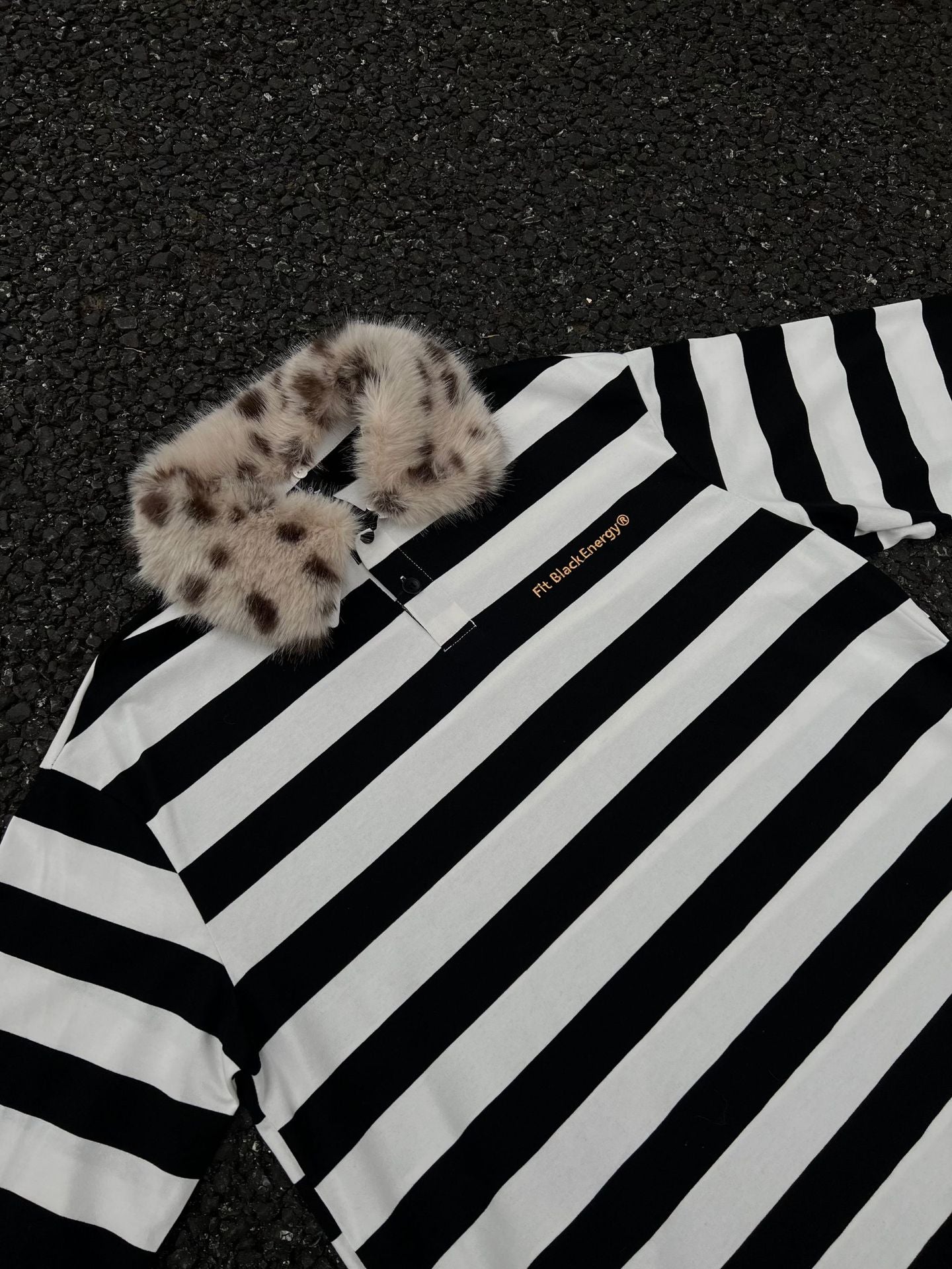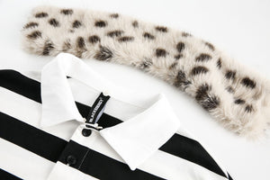 • Detail Features: Striped Pattern, Faux Fur Collar, Ribbed Cuffs and Hem