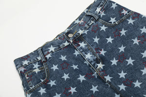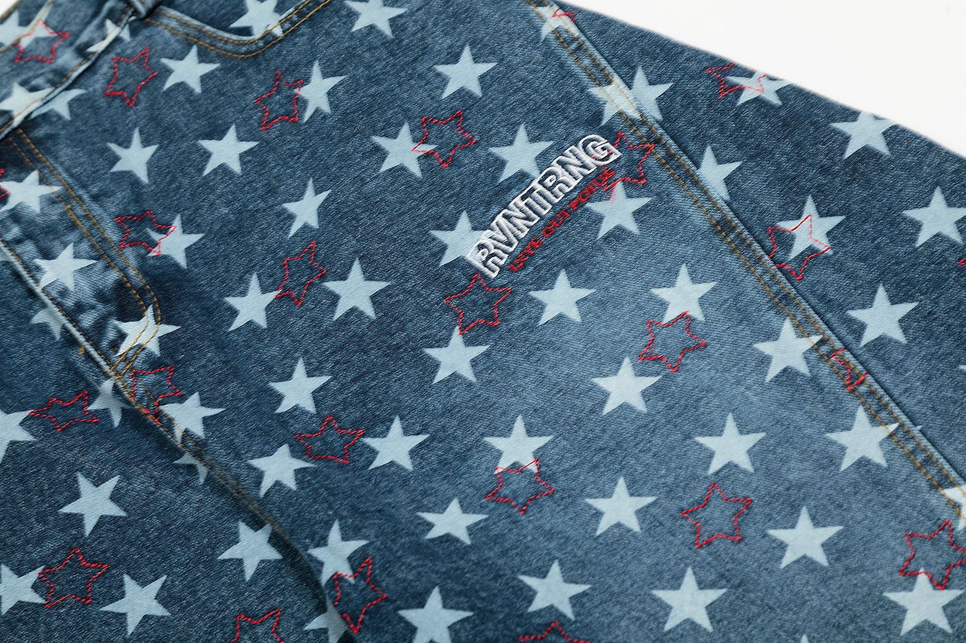 Zwoyren Vintage Star Embroidered Barrel Jeans