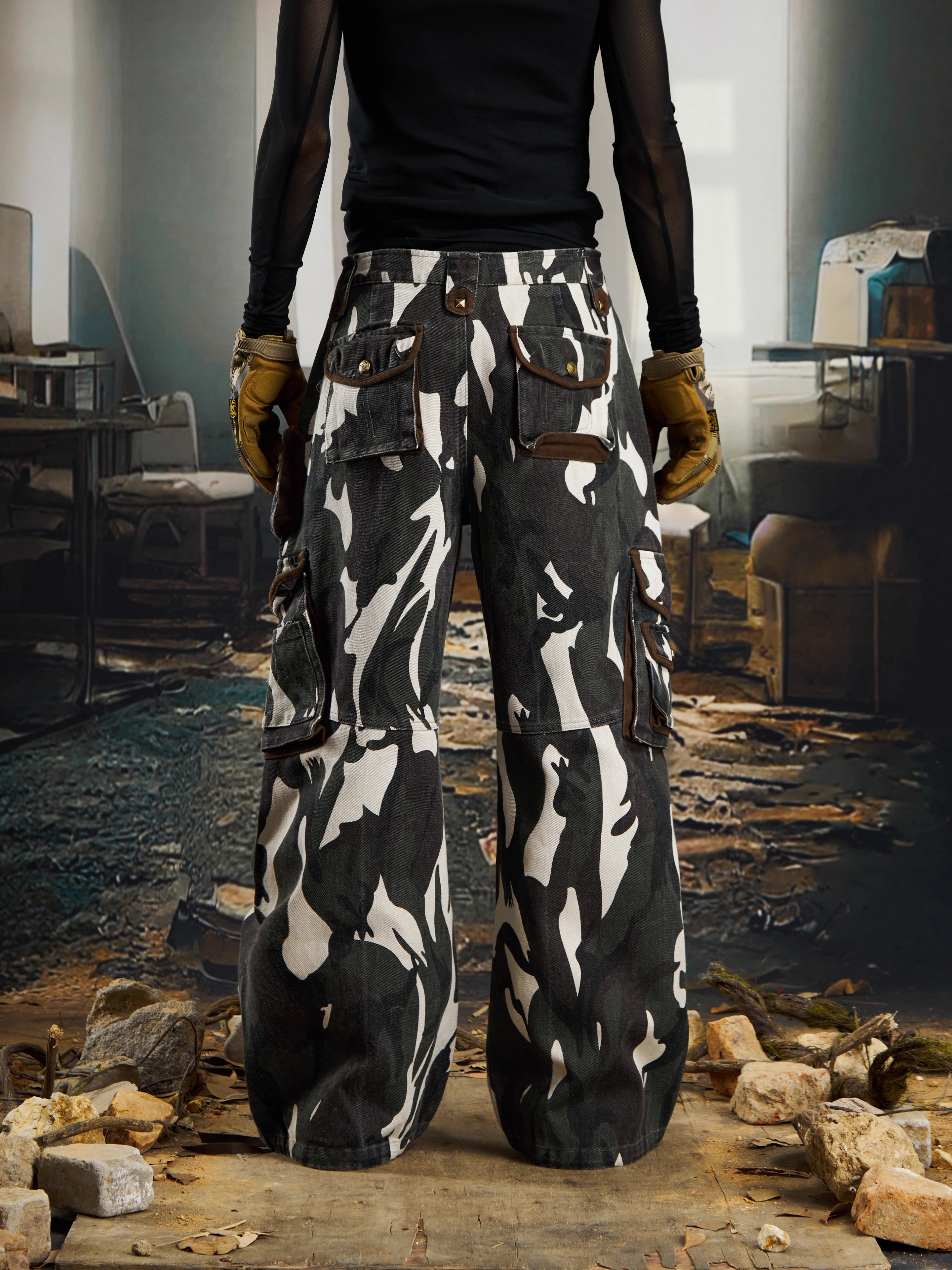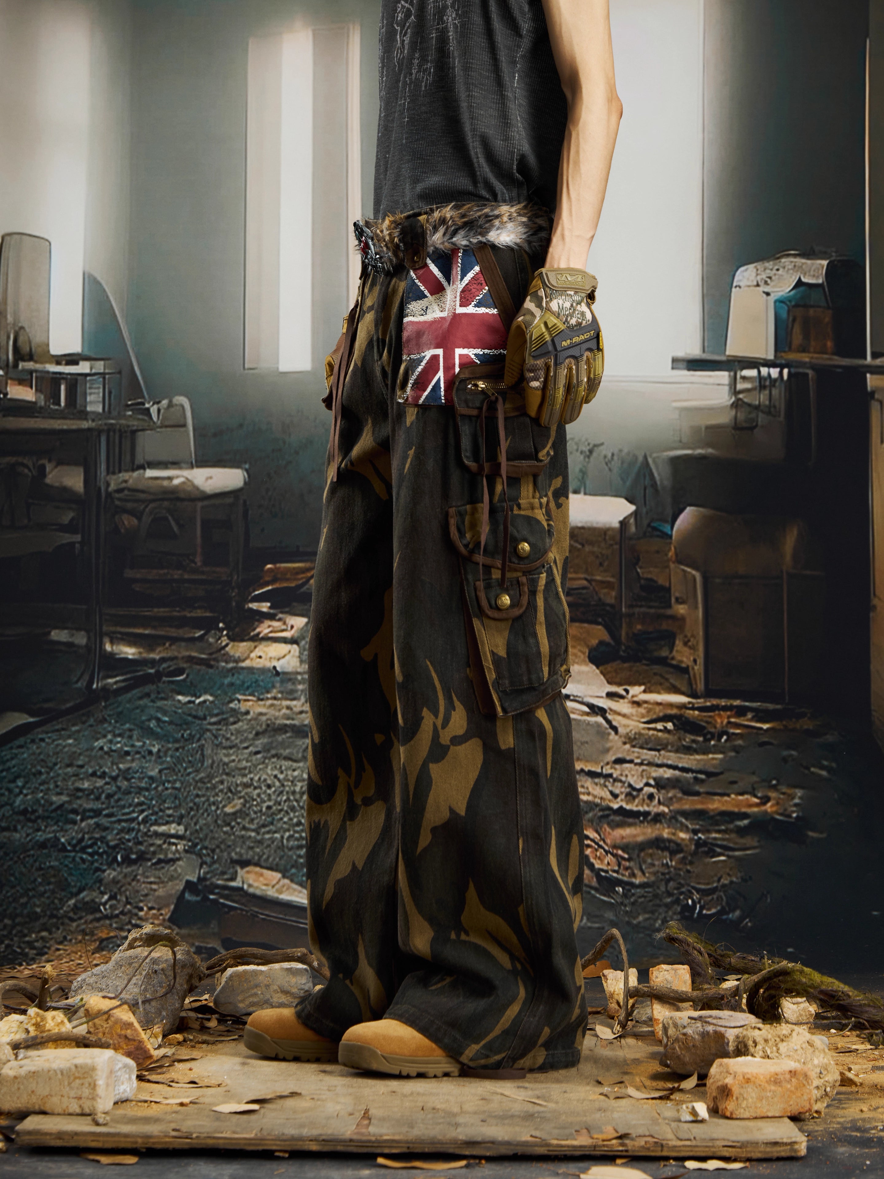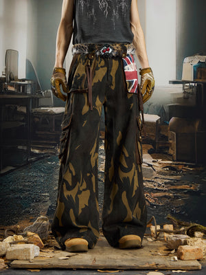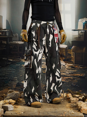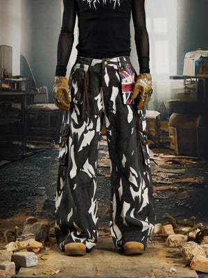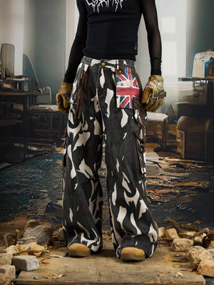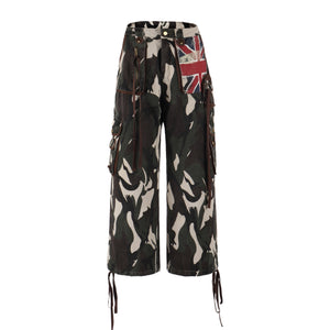 Pantalones cargo de camuflaje con parche de bandera de la Unión retro de Zwoyren