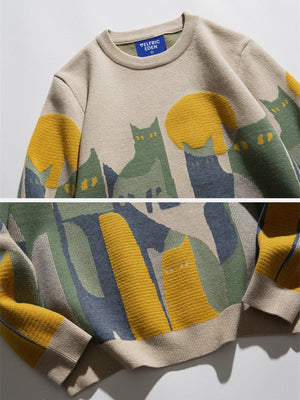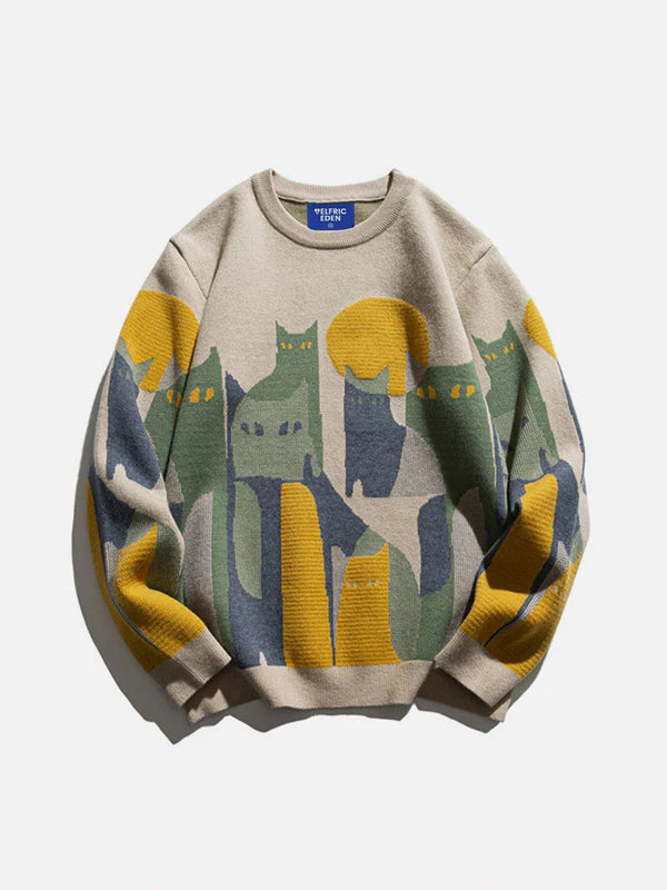 Uniquely illustrated with charming cats, our Color Blocking Cat Sweater is the epitome of personality and style. Meticulously curated color combinations and soft, skin-friendly fabric make for a comfortable and fashionable statement.