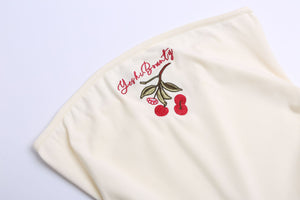 Zwoyren Cherry Embroidered Strapless Top