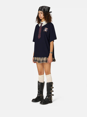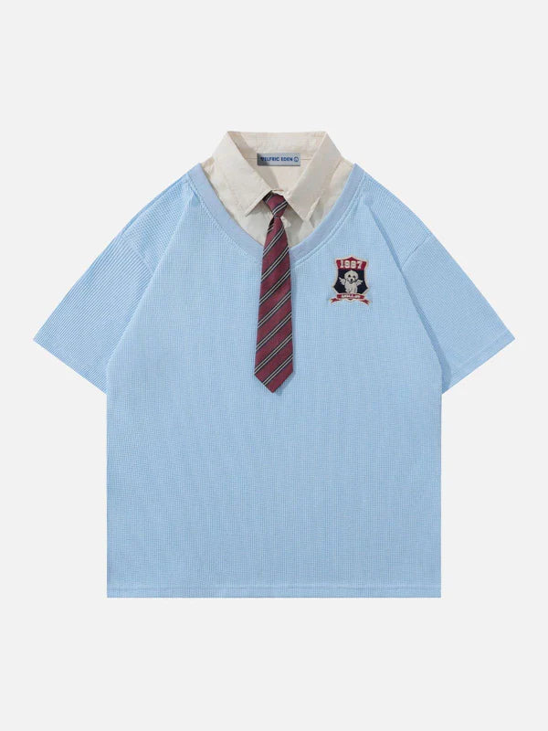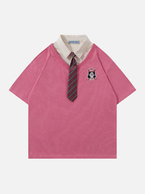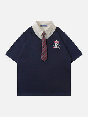 The Zwoyren College Stripe Tie Polo Tee combines classic collegiate style with modern fashion elements. Its design intricately blends stripes and tie elements, showcasing a unique charm. With a sleek and elegant appearance, coupled with comfortable fabric, it becomes a must-have for fashion enthusiasts and campus culture aficionados.