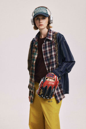 Clothing details: Plaid Fringe Patchwork.