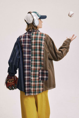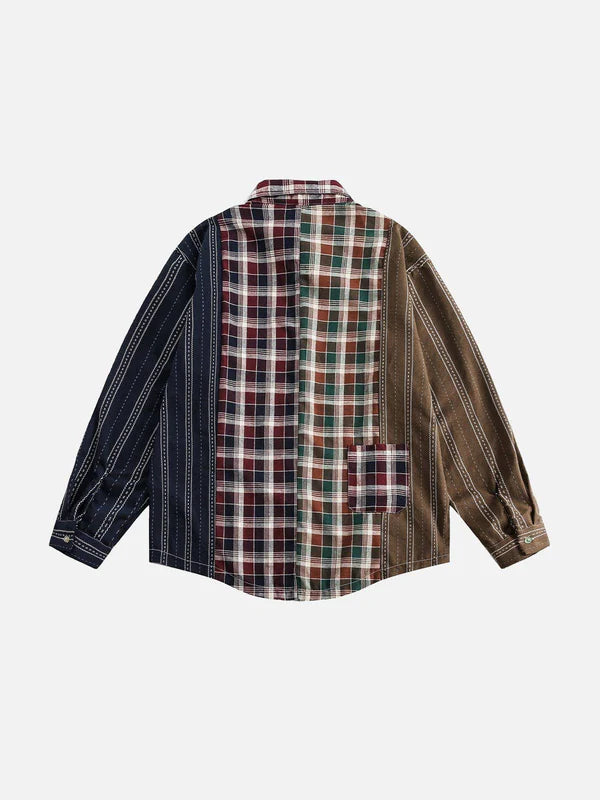 Zwoyren Multi Color Patchwork Long Sleeve Shirt