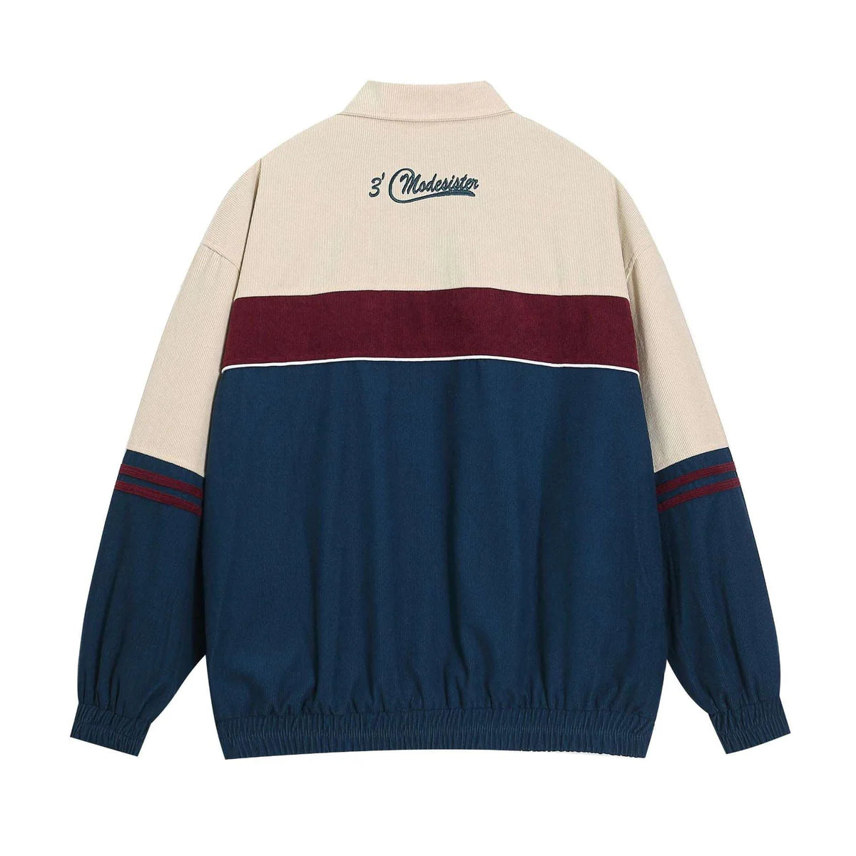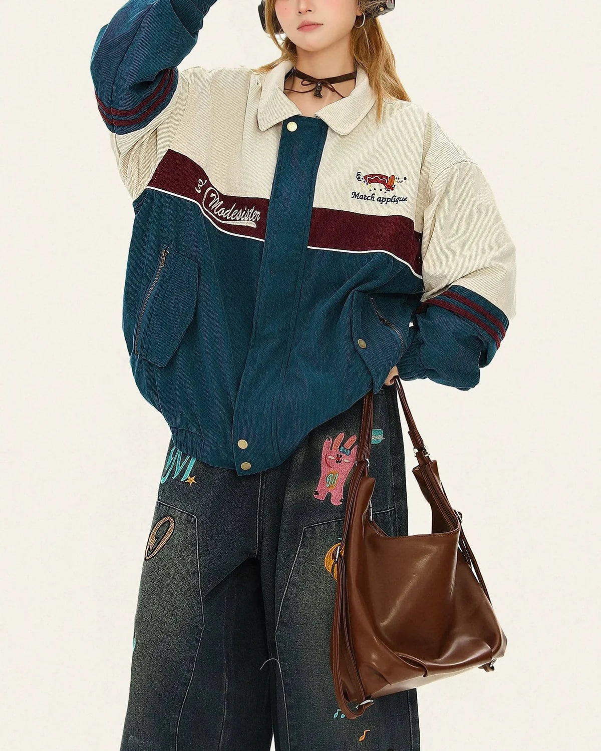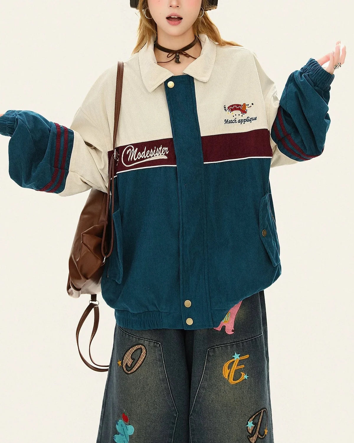 Zwoyren Retro Color Block Corduroy Varsity Jacket