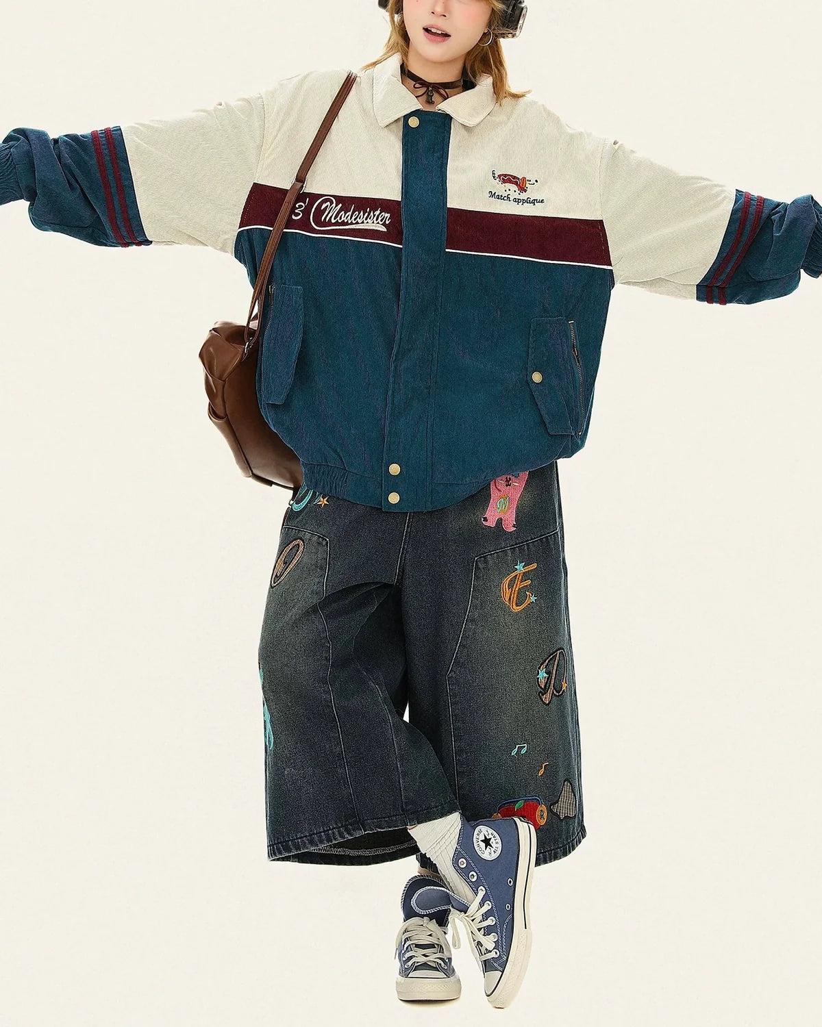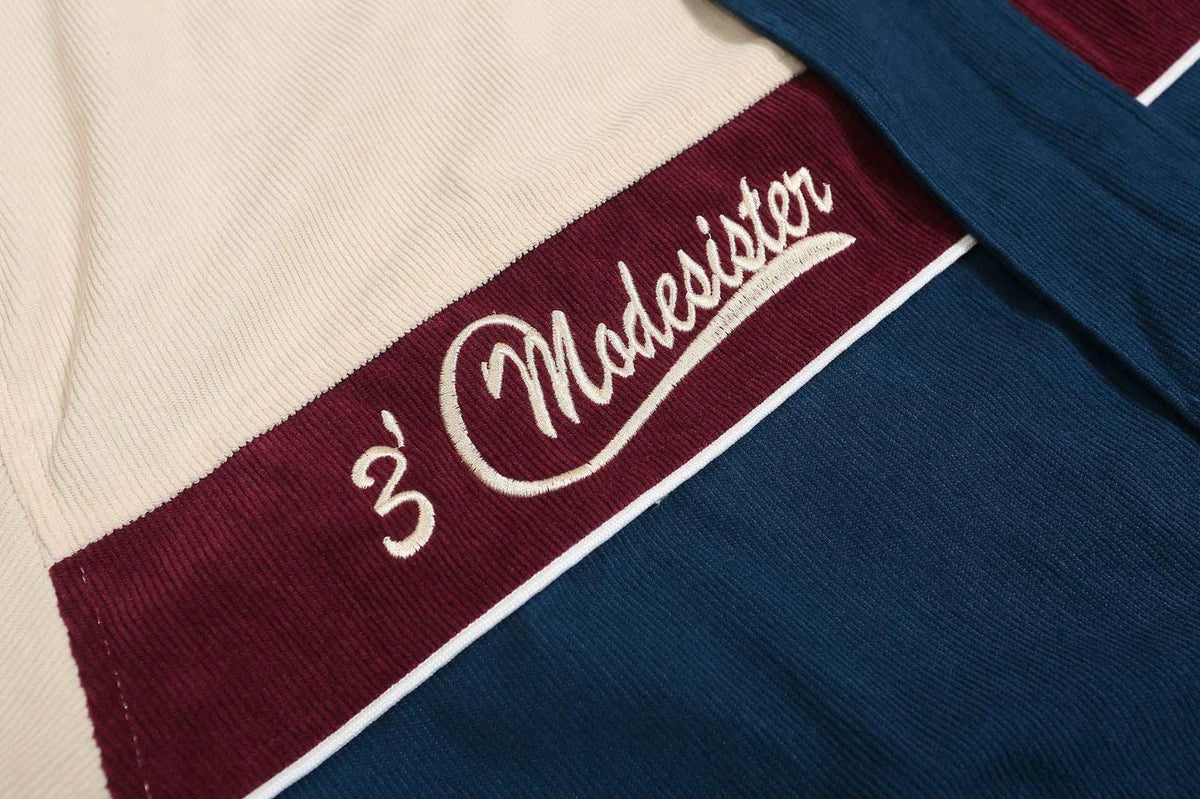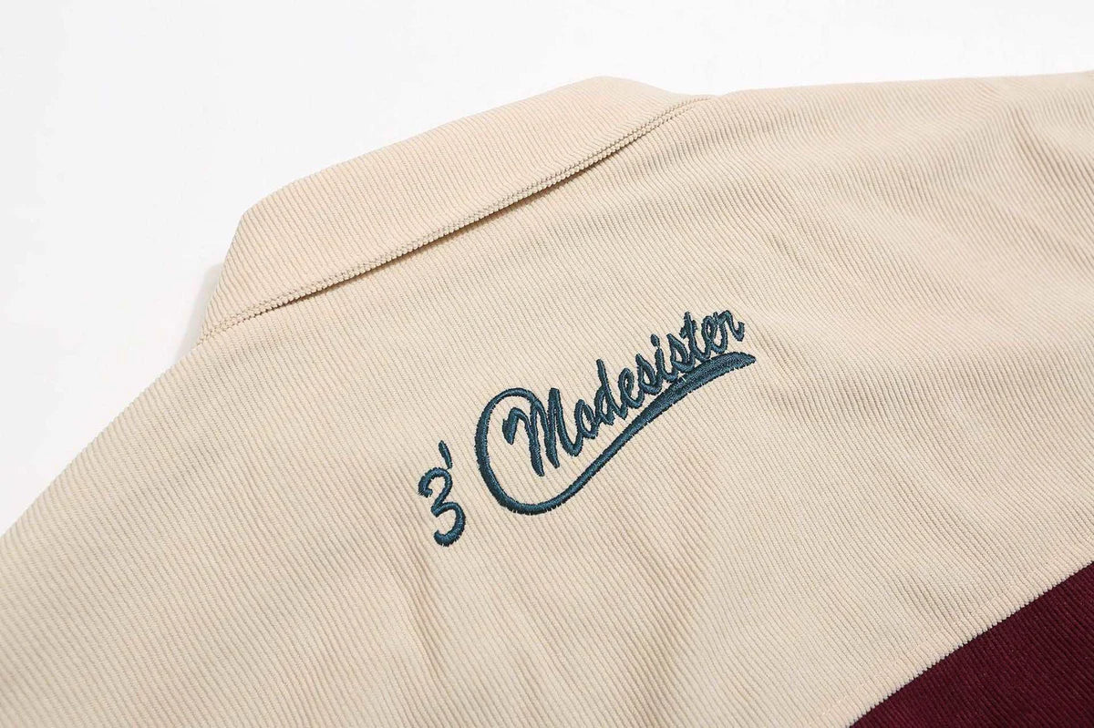 Zwoyren Retro Color Block Corduroy Varsity Jacket