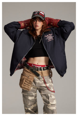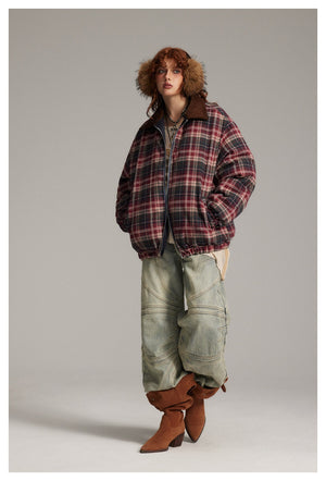 Zwoyren Reversible Plaid Puffer Jacket