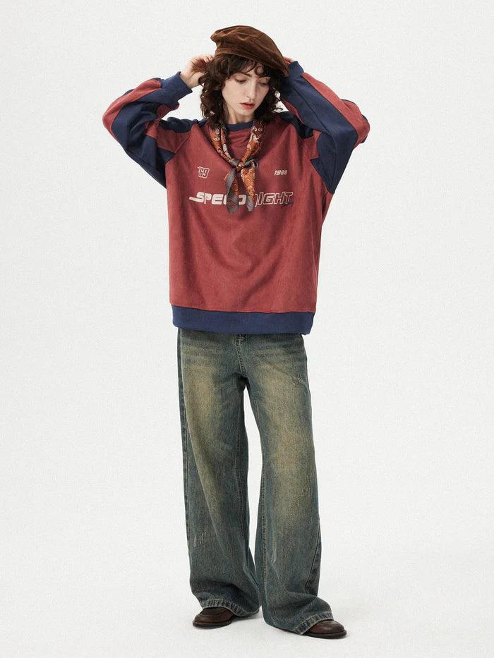Zwoyren Vintage Patchwork Suede Sweatshirt