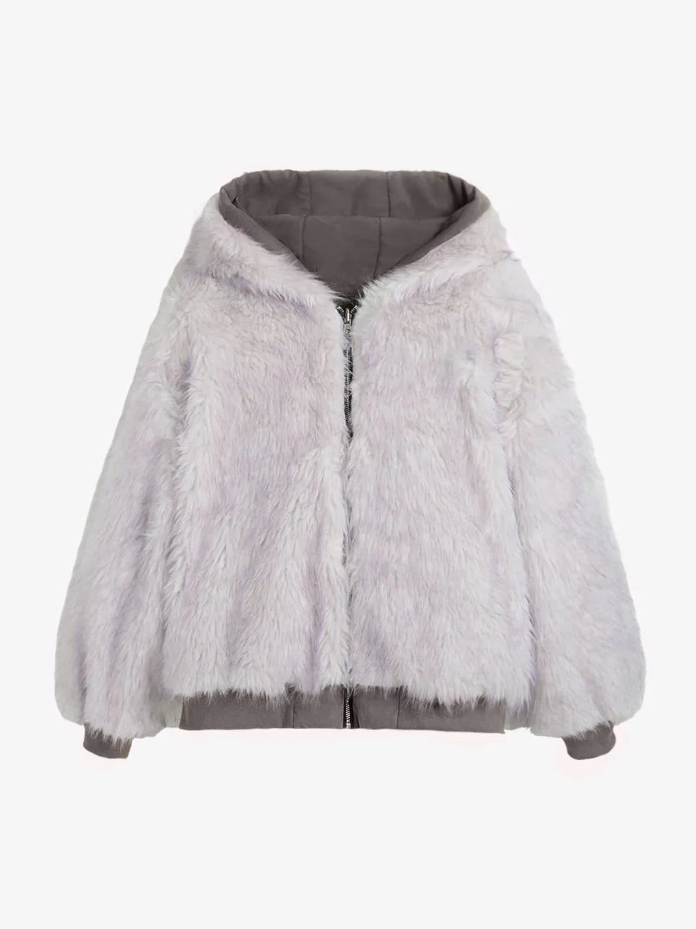 Zwoyren Oversized Reversible Fur Hooded Jacket