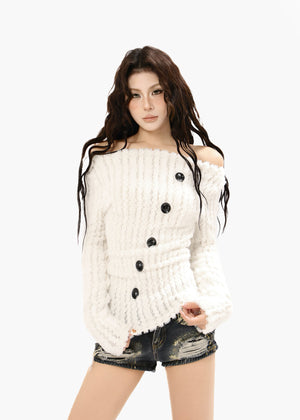 Zwoyren Eğimli Düğmeli Omuzdan Açık Kazak