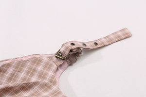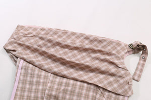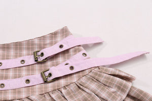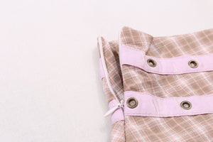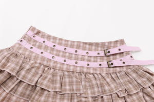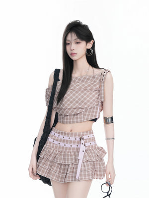 Zwoyren Ekose Omuz Açık Üst ve Fırfırlı Mini Etek Takımı