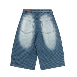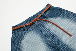 Zwoyren Vintage Plaid Yıkanmış Uzun Jorts